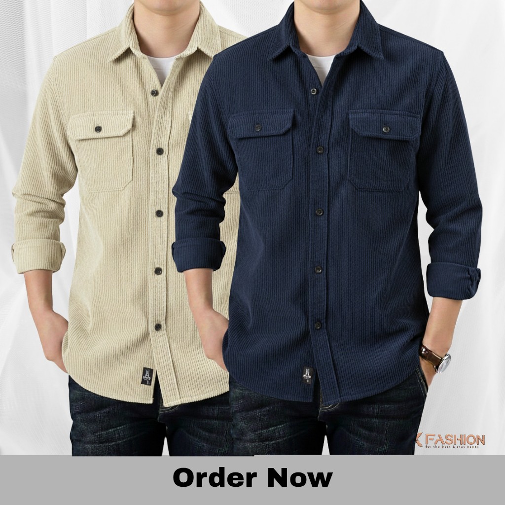 2 Pc Combo Corduroy Fabrics Double pocket long sleeve shirt - 1186
