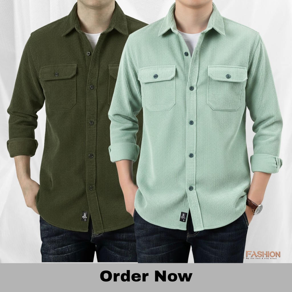 2 Pc Combo Corduroy Fabrics Double pocket long sleeve shirt - 1191