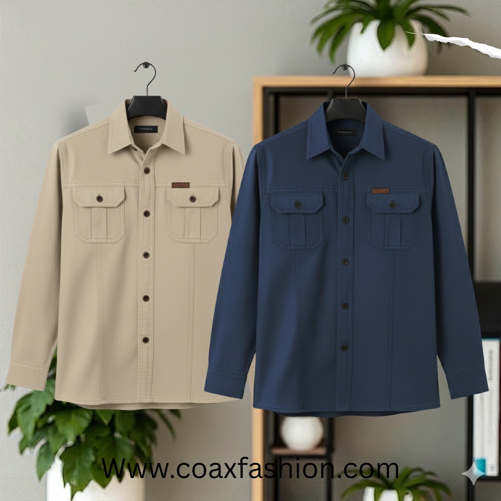 2 pc combo double Pocket Full Sleeves Panel Shirt - 1018