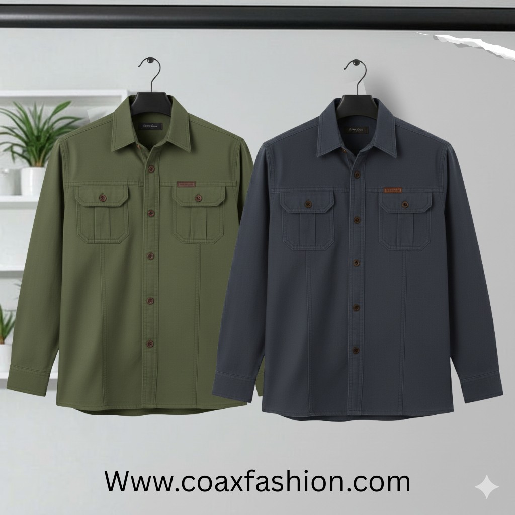 2 pc combo double Pocket Full Sleeves Panel Shirt - 1022