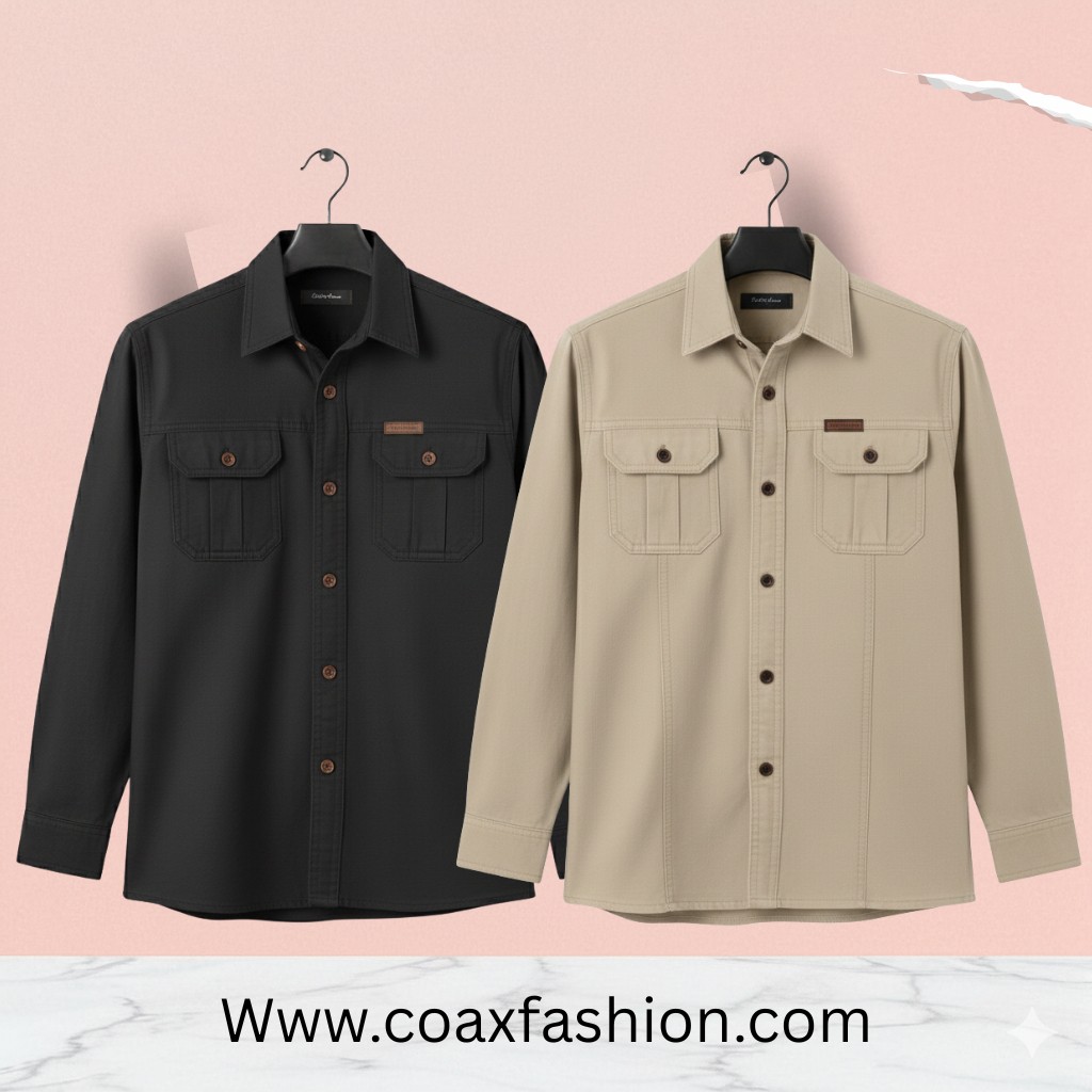 2 pc combo double Pocket Full Sleeves Panel Shirt - 1023