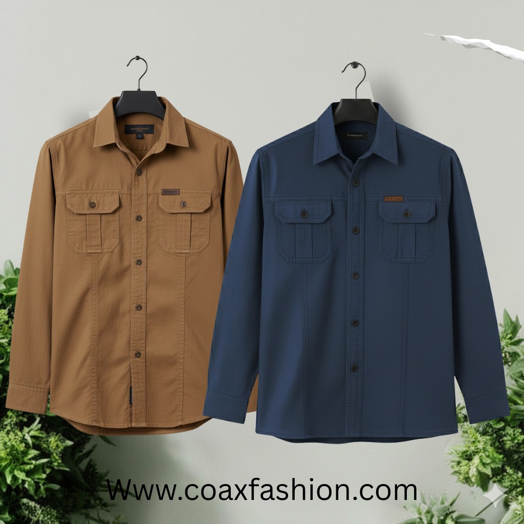 2 pc combo double Pocket Full Sleeves Panel Shirt - 1024