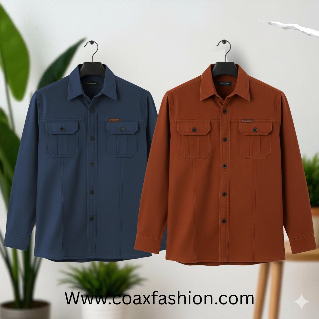 2 pc combo double Pocket Full Sleeves Panel Shirt - 1026