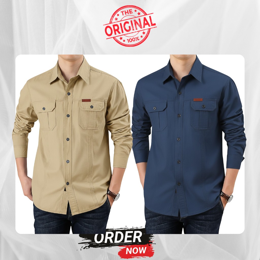 2 Pc Combo Double Pocket Full Sleeves Panel Shirt - 1117