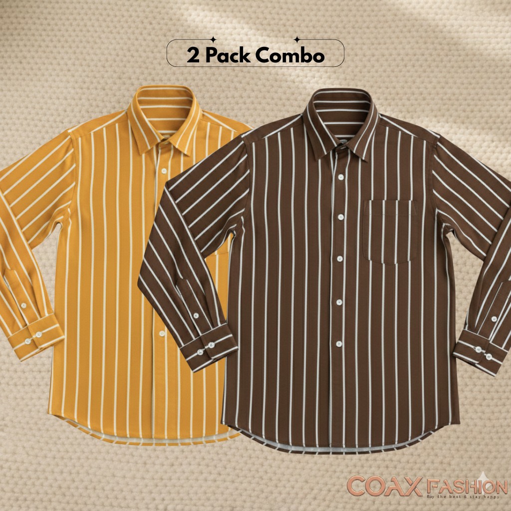 2 Pc Combo Men's Full Sleeve Premium Striped Shirt - 1374