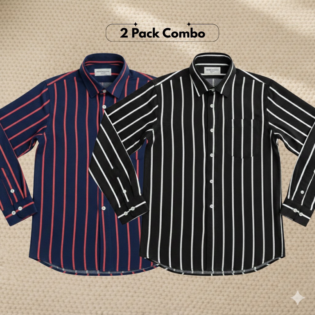 2 Pc Combo Men's Full Sleeve Premium Striped Shirt - 1376