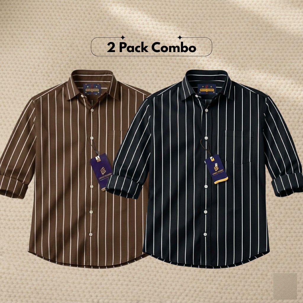 2 Pc Combo Men's Full Sleeve Premium Striped Shirt - 1396