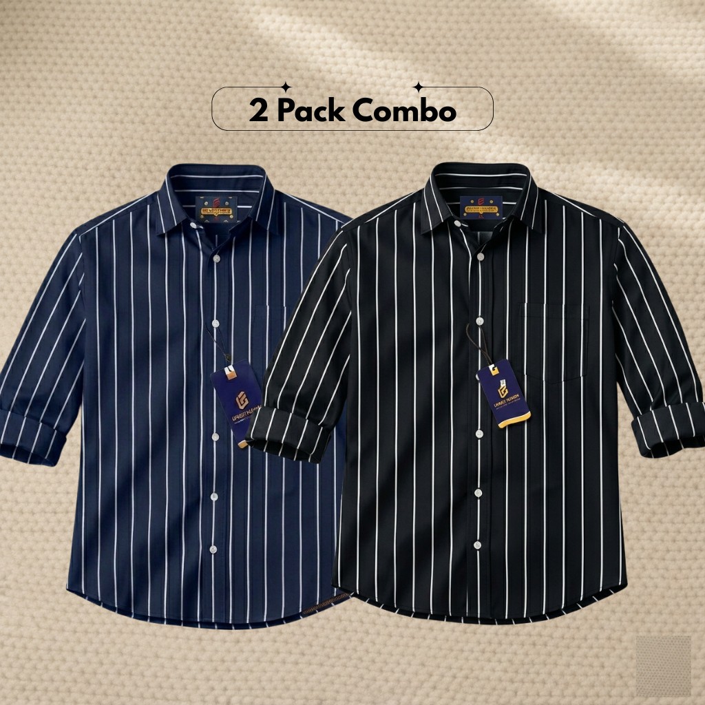 2 Pc Combo Men's Full Sleeve Premium Striped Shirt - 1401