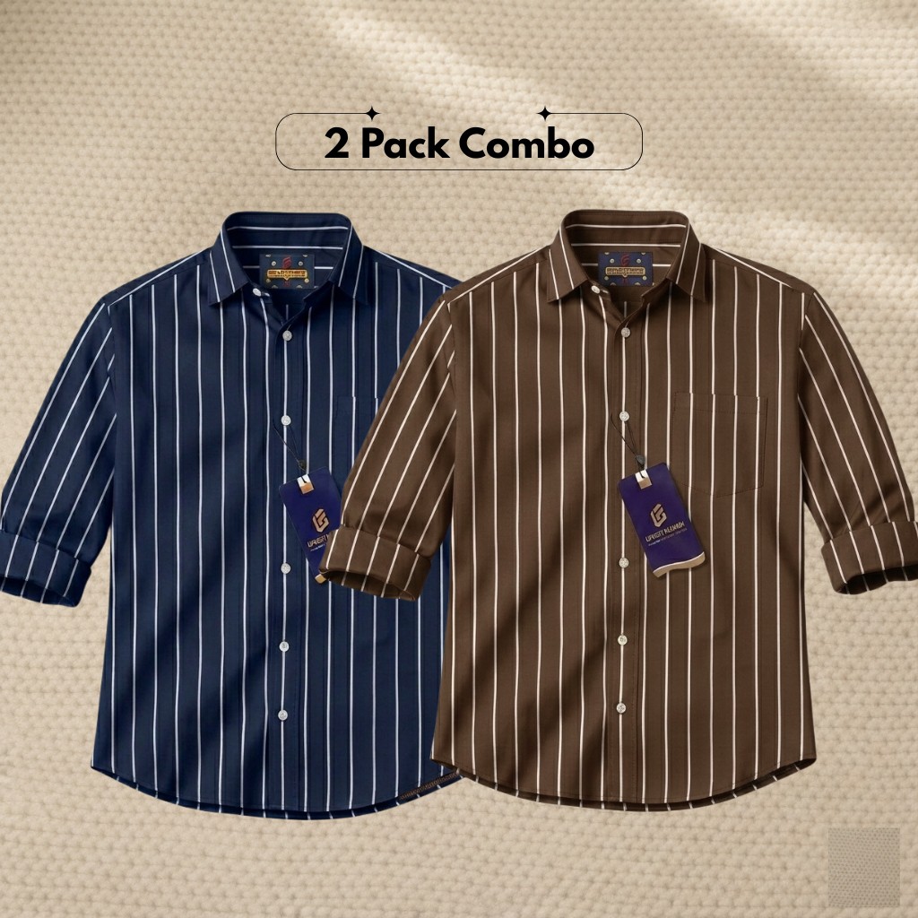 2 Pc Combo Men's Full Sleeve Premium Striped Shirt - 1402
