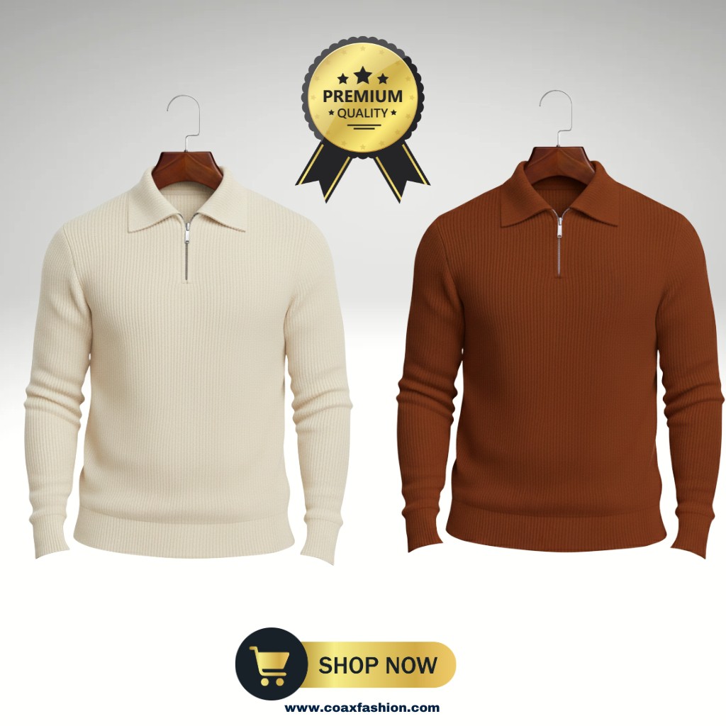 2 Pc combo men's Rib high Neck Sweater (Half zipper) - 1060