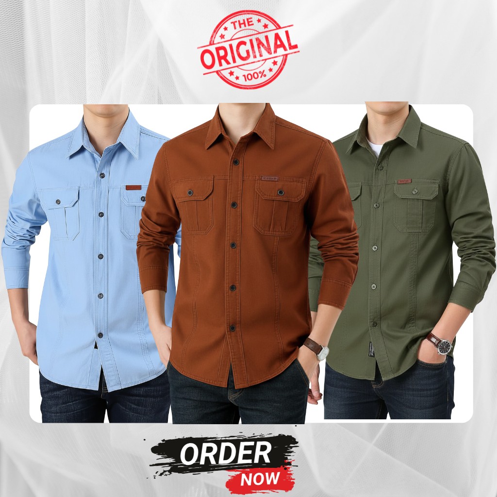 3 Pc Combo Double Pocket Full Sleeves Panel Shirt - 1129