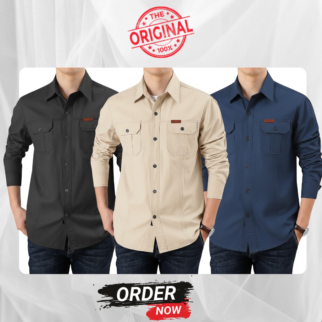 3 Pc Combo Double Pocket Full Sleeves Panel Shirt - 1130
