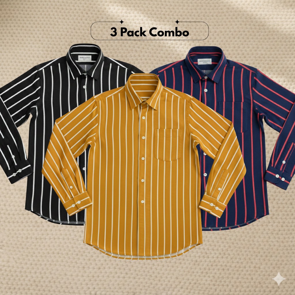3 Pc Combo Men's Full Sleeve Premium Striped Shirt - 1381