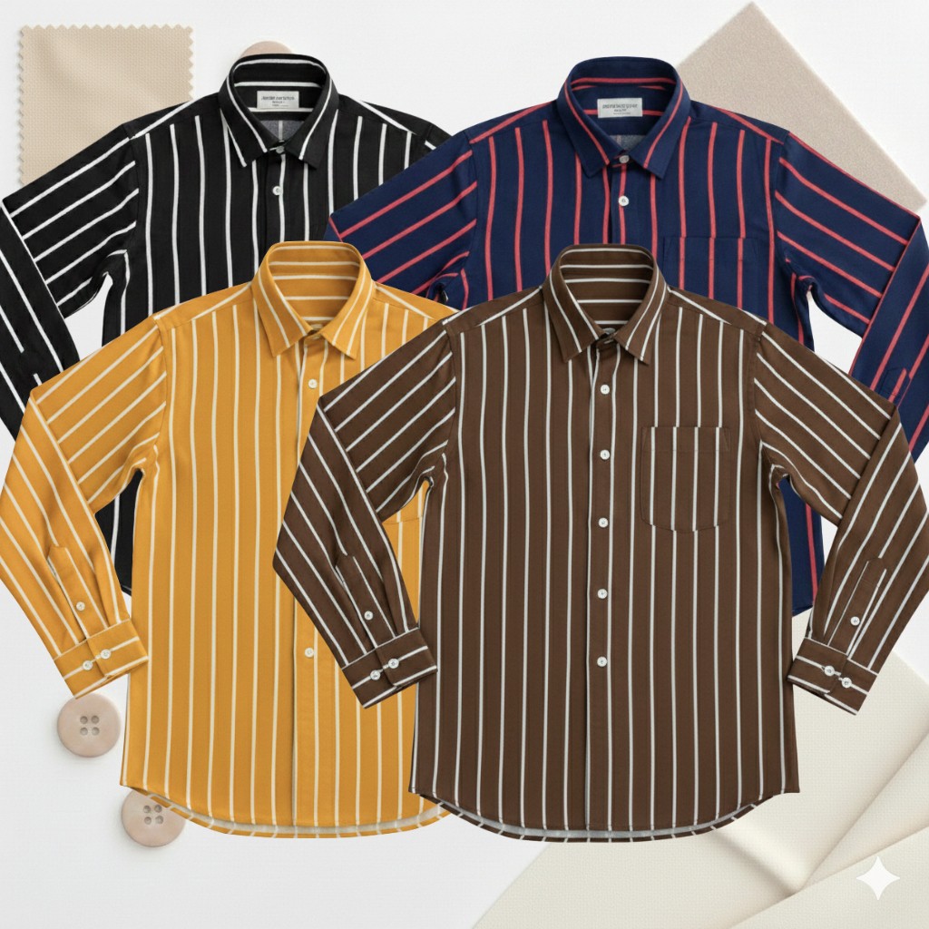 4 Pc Combo Men's Full Sleeve Premium Striped Shirt - 1382