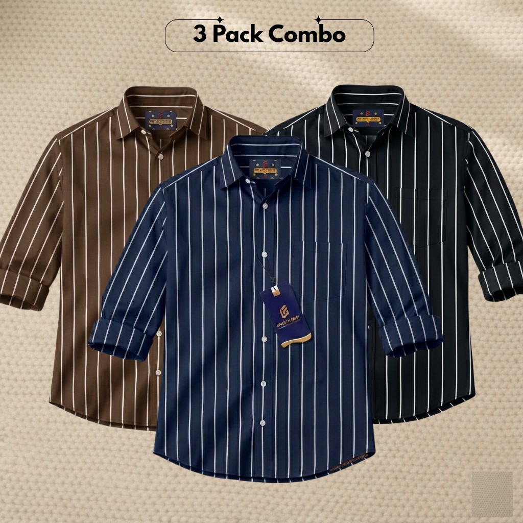3 Pc Combo Men's Full Sleeve Premium Striped Shirt - 1404