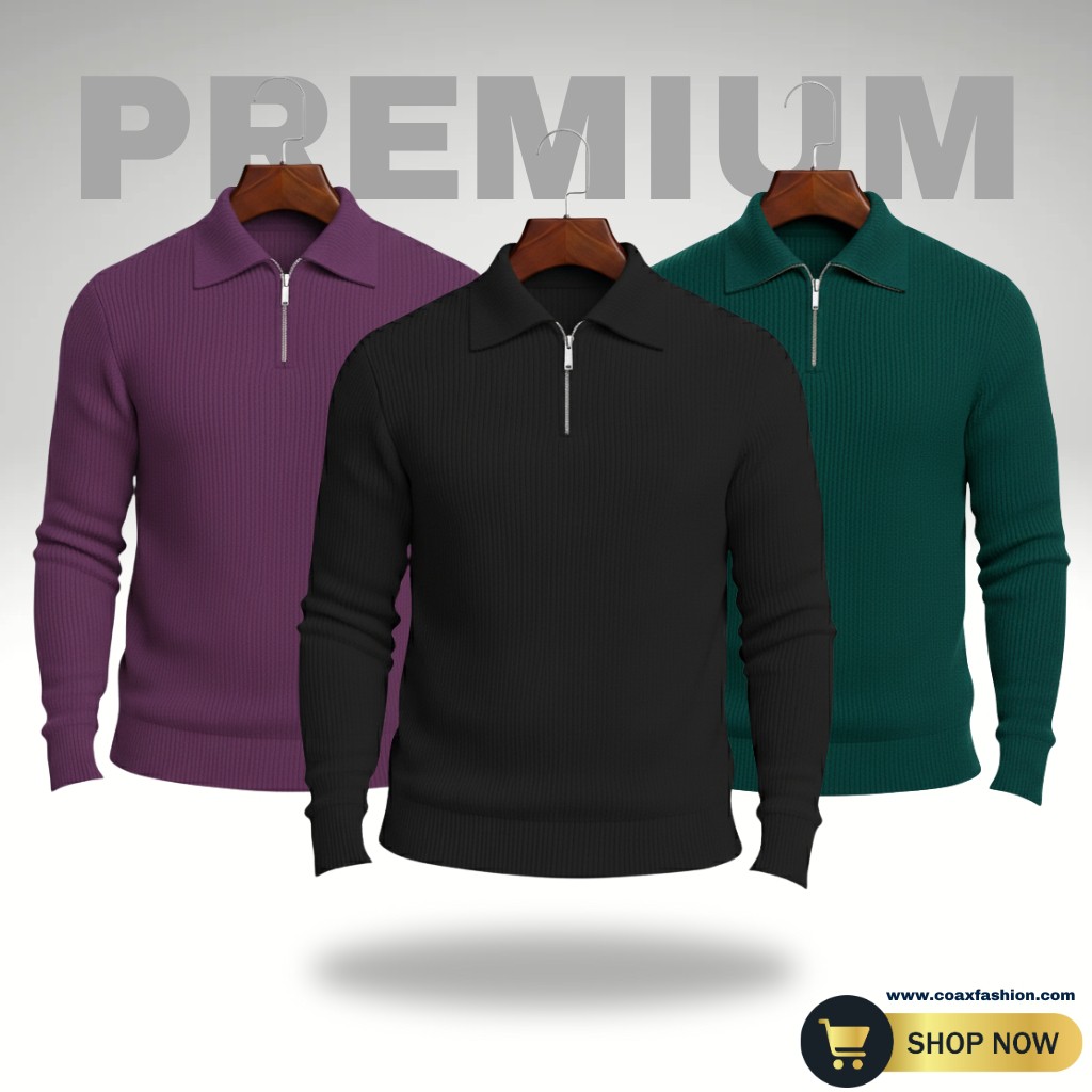 3 Pc combo men's Rib high Neck Sweater (Half zipper) - 1064