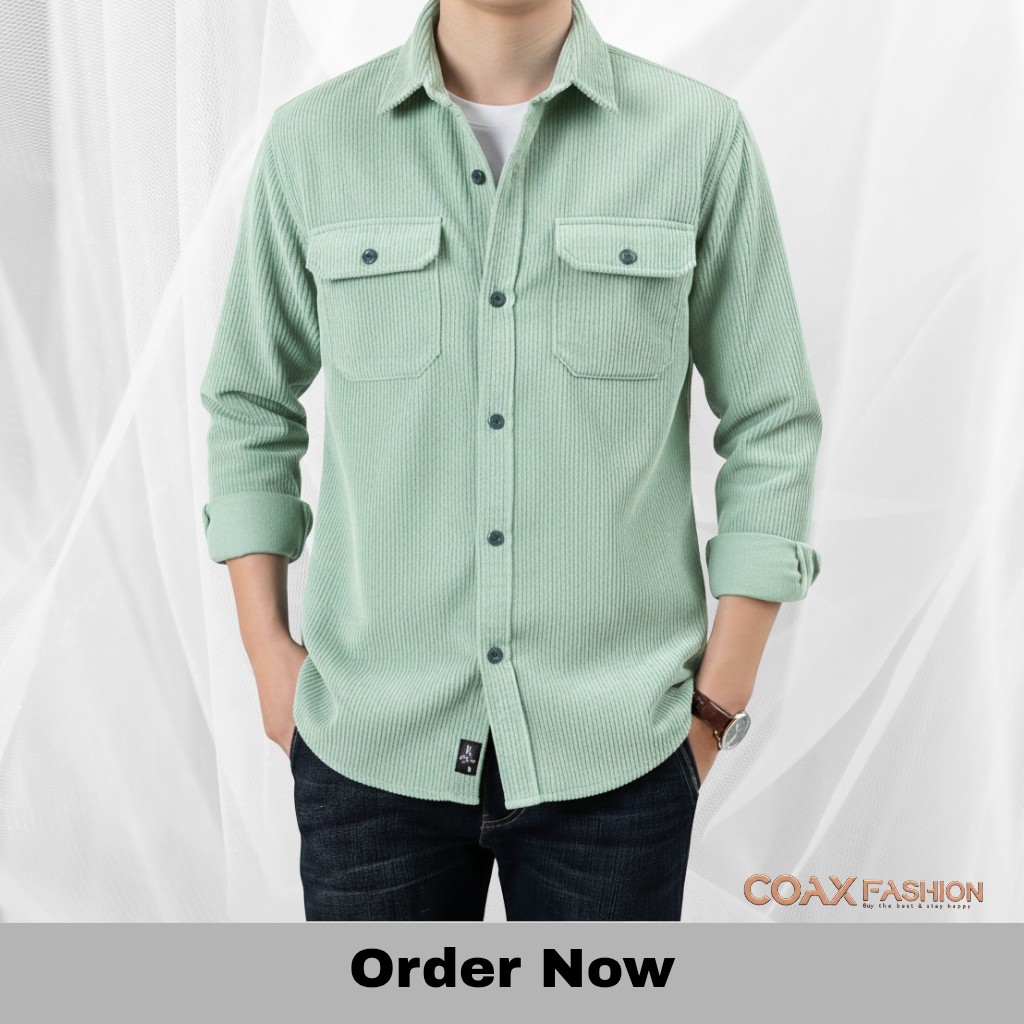 Corduroy Fabrics Double pocket long sleeve shirt - 1181