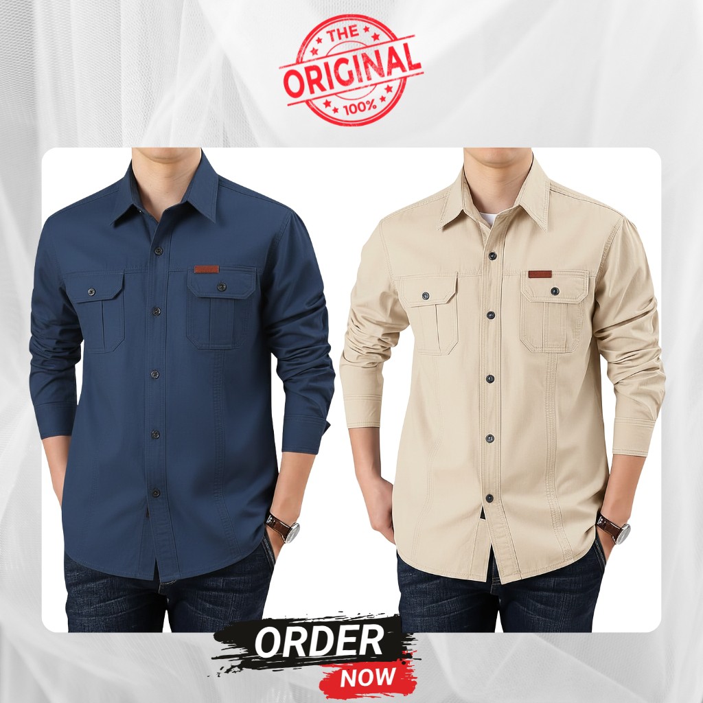 2 Pc Combo Double Pocket Full Sleeves Panel Shirt - 1116