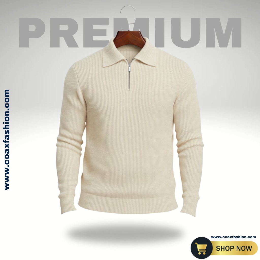 Men's Rib high Neck Sweater (Half zipper) - 1055