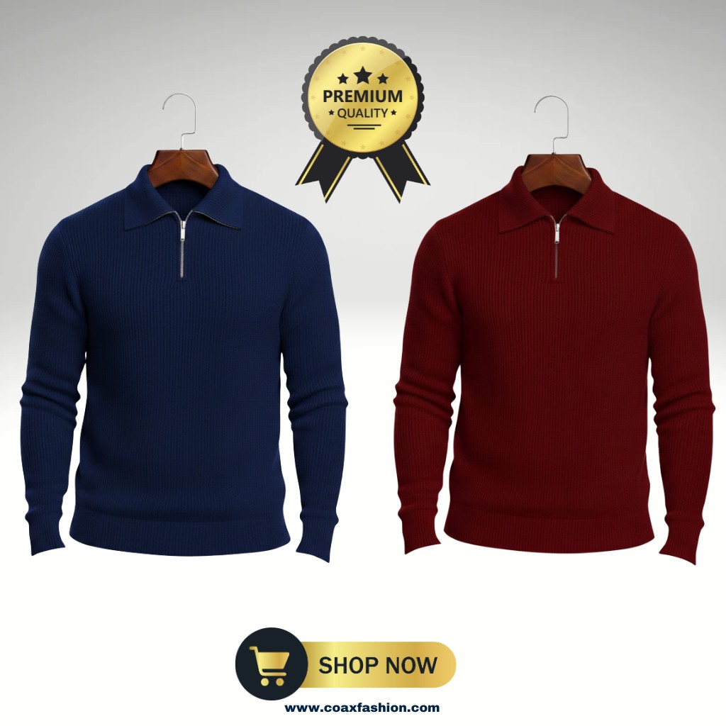 2 Pc combo men's Rib high Neck Sweater (Half zipper) - 1059