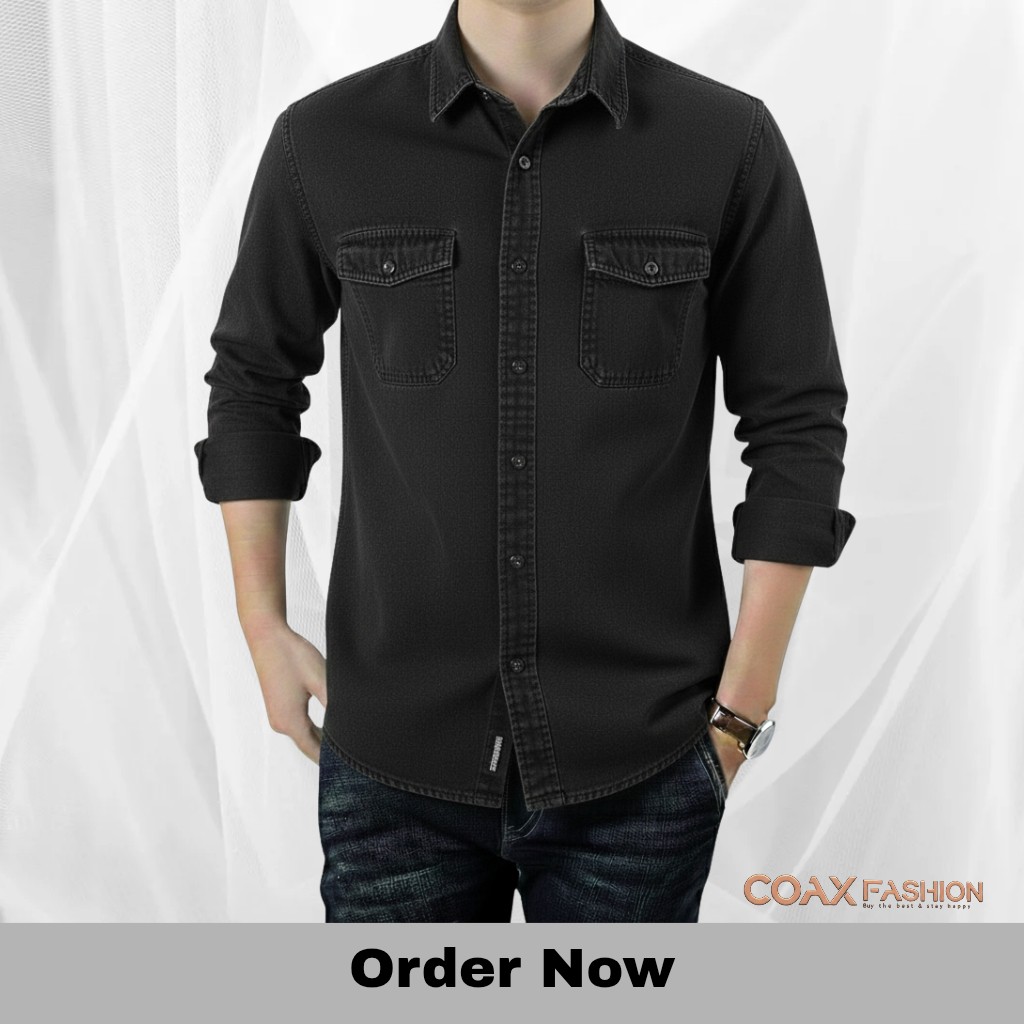 • Men's Casual Double-pocket Full Sleeve Denim Shirt