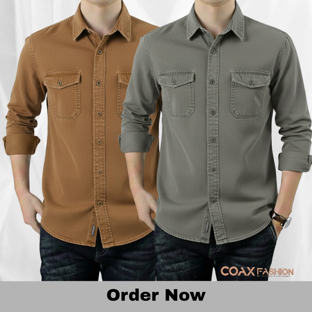 2 Pc Combo Premium Double Pocket Denim Shirt - 1171